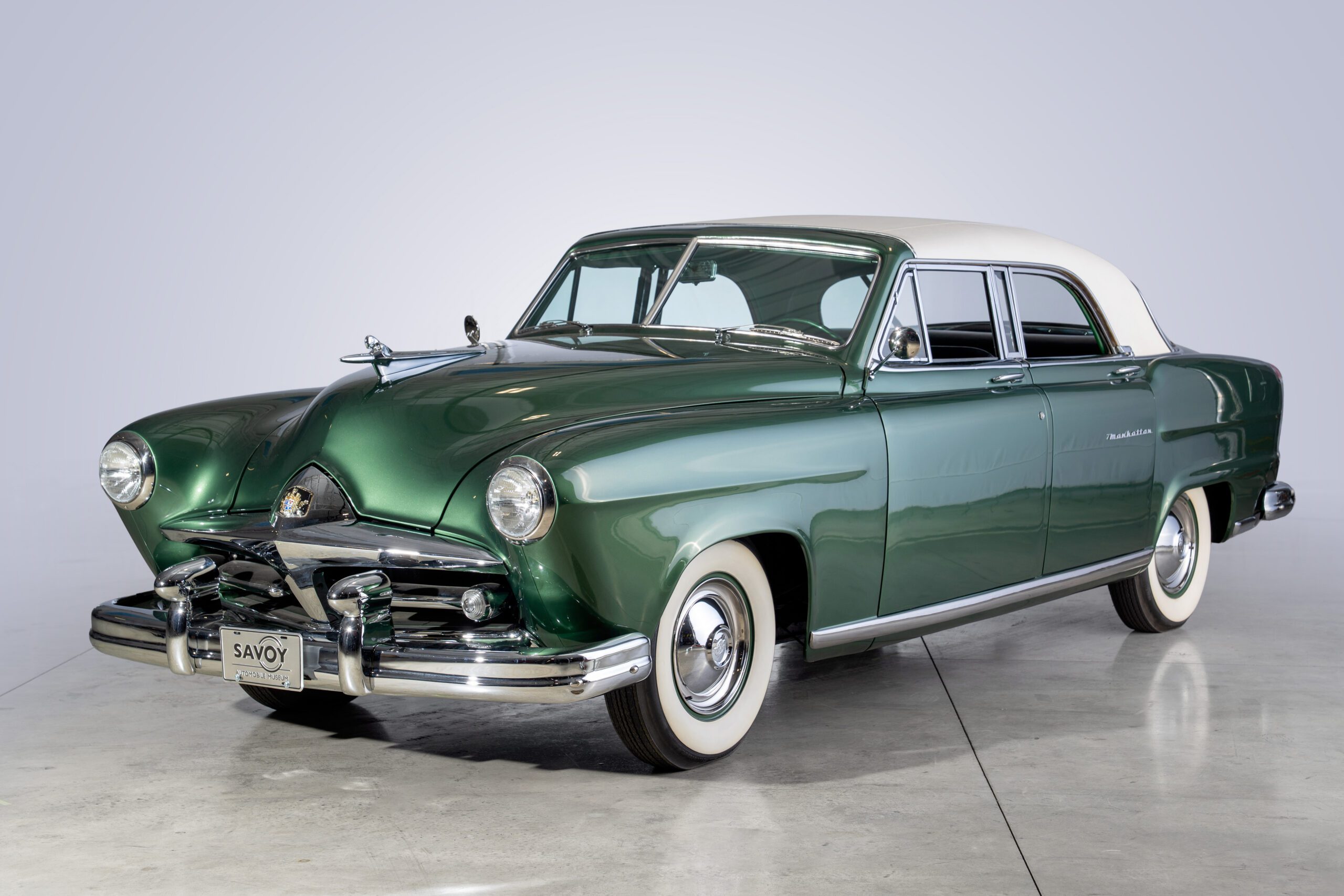 The Frazer Manhattan is associated with post-war America’s optimism and desire for luxury. As the nation transitioned to a peacetime economy, automobile manufacturers began to dream big. Up front, the Manhattan’s distinctive chrome grille captured viewers’ attention. The body has sleek, aerodynamic lines, and consumers who wish to stand out could choose from two-tone finishes highlighting the car’s curvy contours.